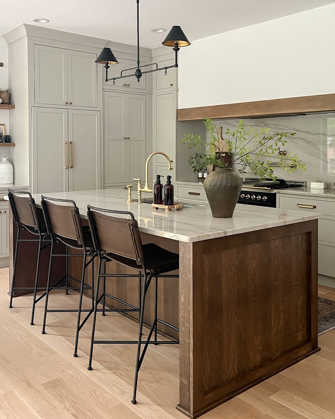 While all-white kitchens aren’t gone, 2026 is embracing warmer tones: think taupe, creamy off-whites, mushroom greige, and desert clay. These hues add a cozy sophistication and play beautifully with natural materials.