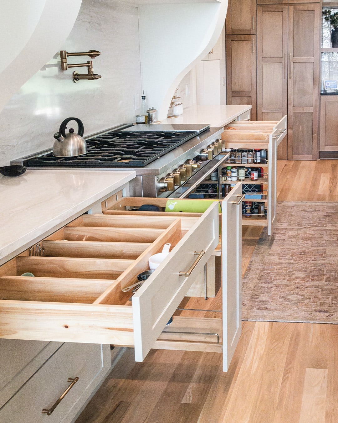 Kitchens are becoming more functional than ever, thanks to micro-organized storage solutions. Think:
